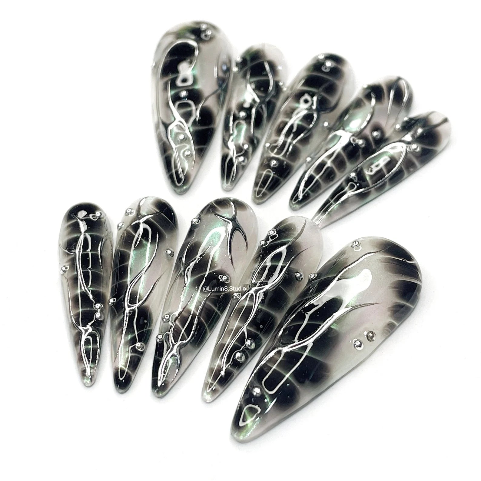 LM19 Freestyle Black Snake Skin & Metallic Silver on Transparent Mermaid Aurora