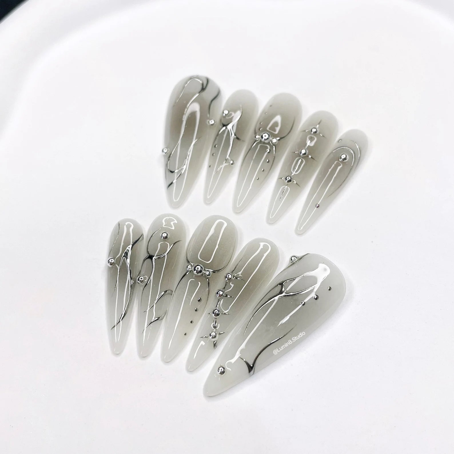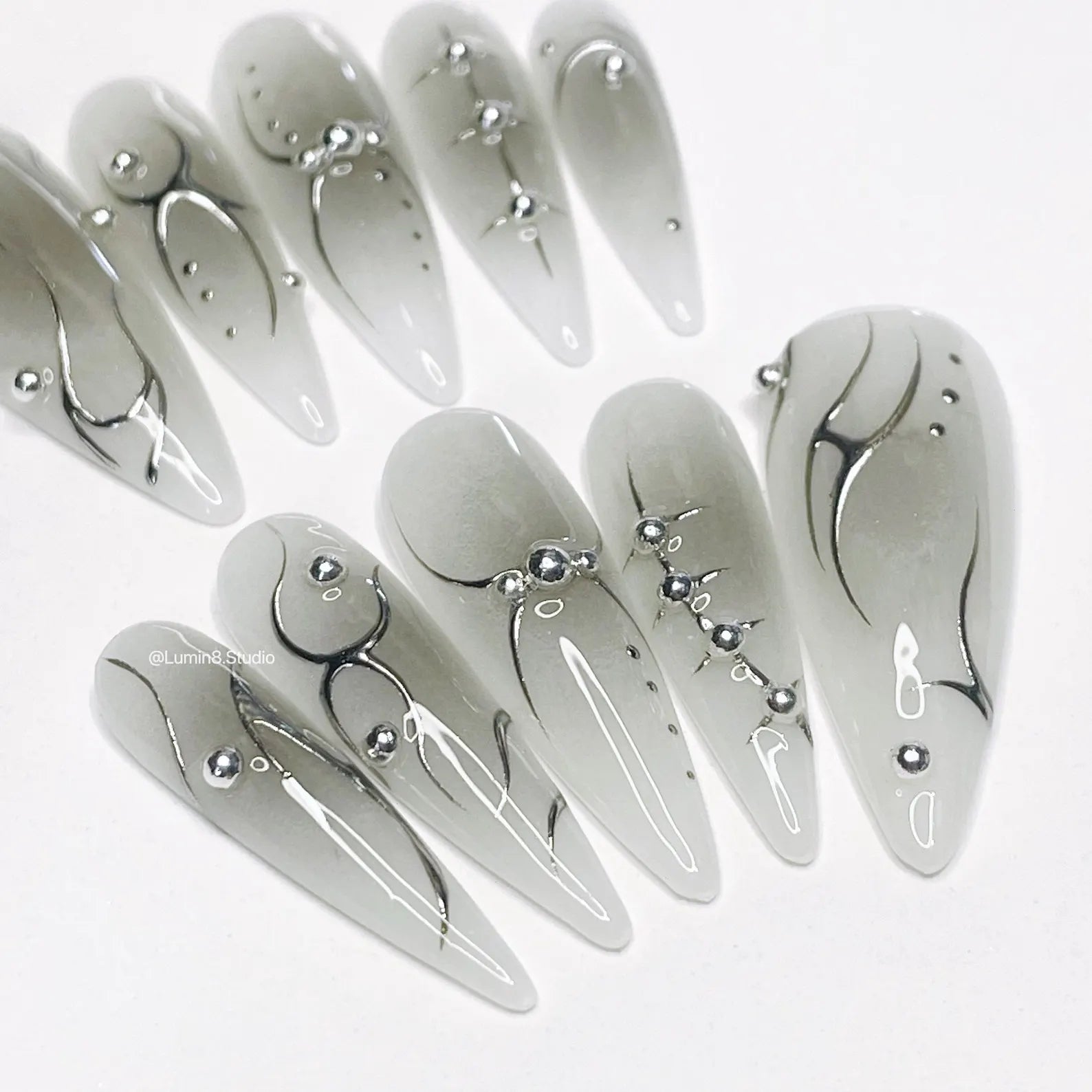 LM20 Freestyle Metallic Silver Black and White Aura Nails